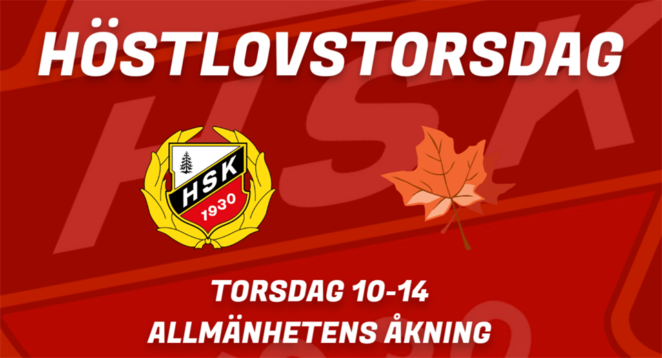 Höstlovet har börjat och allmänhetens åkning har som vi tidigare gått ut med ett utökat schema. På Torsdag kryddas det på lite extra när det är allmänhetens mellan 10.00-14.00. Ledare från Skridsko- och Hockeyskolan kommer att finnas på plats under dagen och cafeterian håller öppet för fikasugna. Kom och ha en rolig dag tillsammans både medlemmar och allmänhet PS, vi har även ändrats fredagens HSK-allmänhet mellan 16.00-18.00 till 14.30-17.30 istället så att ni har möjlighet att åka allmänhet 10.00-17.30. Cafeterian kommer även att vara öppen för alla då också från 14.00 Varmt välkomna! Hedemora SK 31 okt 2022